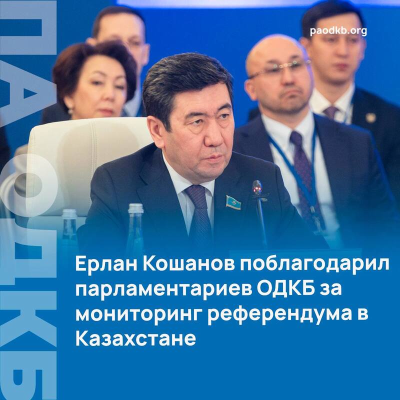 Кроме того, Ерлан Кошанов поблагодарил парламентариев ОДКБ за мониторинг референдума в Казахстане по принятию новой Конституции.