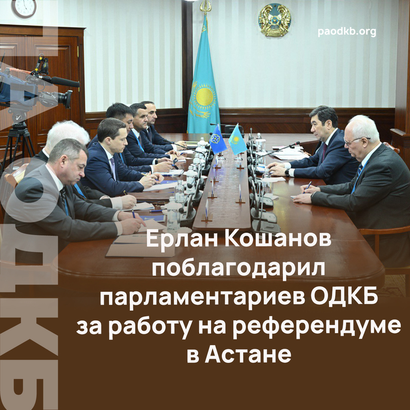 Ерлан Кошанов поблагодарил парламентариев ОДКБ за работу на референдуме в Астане