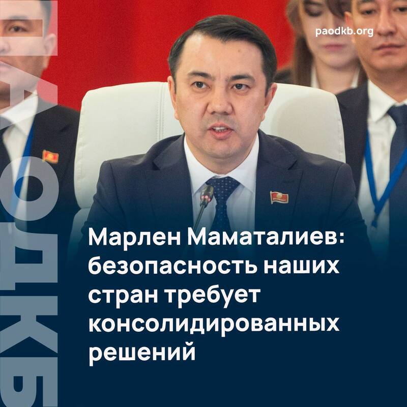 В своем выступлении Торага Жогорку Кенеша напомнил, что в этом году Российская Федерация осуществляет свое председательство в Организации под девизом «Коллективная безопасность в многополярном мире: единая цель, общая ответственность».