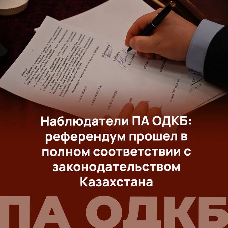 Наблюдатели ПА ОДКБ: референдум прошел в полном соответствии с законодательством Казахстана