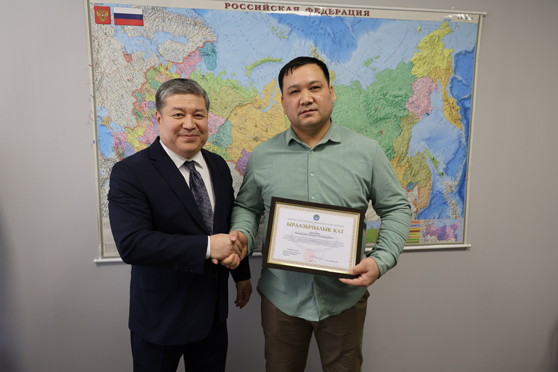 Полпред Жогорку Кенеша в ПА ОДКБ вручил благодарности Парламента КР соотечественникам